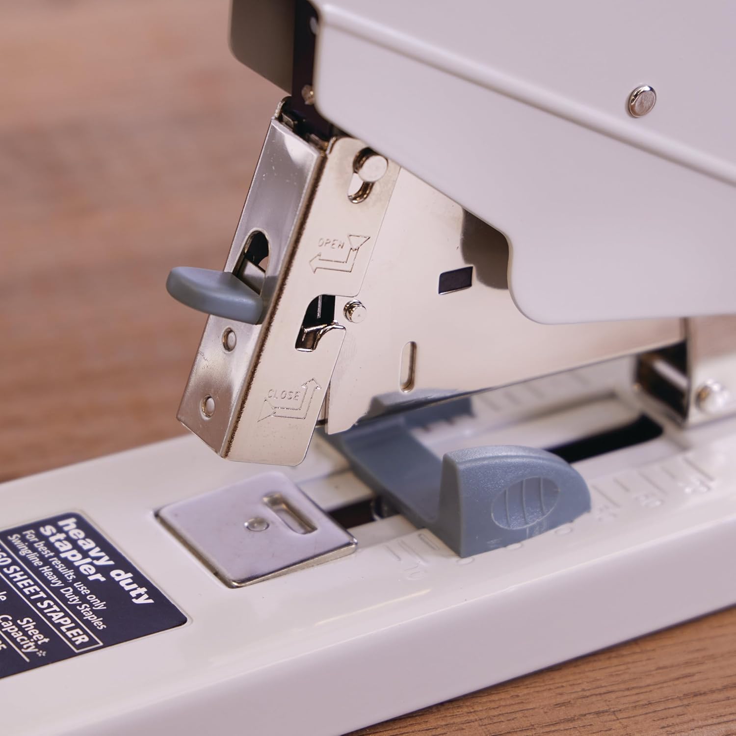 Product Description The Swingline Heavy Duty Stapler brings strength and durability to support busy offices. Strong, all-metal construction ensures that this stapler stands up to the demands of frequent use in a fast-paced office. Solidly secure even the most daunting stack of paper - heavy duty stapler fastens an impressive 160 sheets. For best results, use with Swingline Heavy Duty Staples in 1/4", 3/8", 1/2", 5/8" or 3/4" leg lengths. Select staples based on how many sheets of paper need to be fastened. Stapler maintains functionality with a built-in, front end jam clearing mechanism that prevents disruptions. The precision alignment guide helps ensure accurate placement, while the full, 2-5/8" throat depth delivers maximum performance and increased flexibility. A complete case of four staplers allows you to spread them throughout the office for easy access. This heavy duty, sleek, gray stapler is built to take on big jobs.. Amazon.com Providing work-horse reliability for heavy-duty stapling applications, the Swingline S7039002R Deluxe Heavy Duty Stapler includes durable, all-metal construction for years of superior performance. A paper adjustment guide is also included, a feature that ensures jobs of up to 160 sheets of 20-pound paper are stapled with precision. Other useful features include a 2-3/4-inch throat depth for flexibility and control, and soft-touch materials for added comfort. Compatible with Swingline heavy-duty staples in 1/4-, 3/8-, 1/2-, and 3/4-inch lengths, the stapler comes with a front-end jam-clearing mechanism for added precision. The stapler is backed by a manufacturer's limited lifetime warranty.