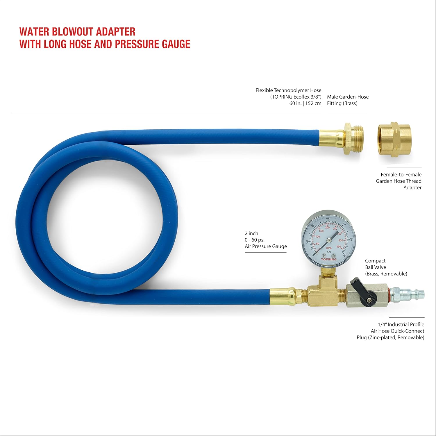 | Size | 12-inch Hose, M & F Connectors |